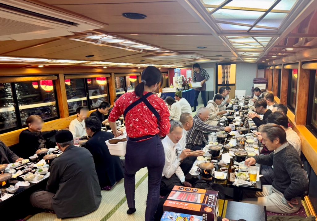 今年も去年と同じ貸切屋形船で忘年会を開催しました